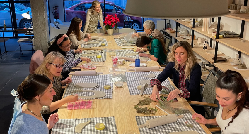 El proceso es pausado, sensorial y muy creativo. Trabajarás con tus manos, elegirás tus plantas y crearás una bandeja con tu estilo, que semanas después recogerás ya cocida y lista para usar o regalar.