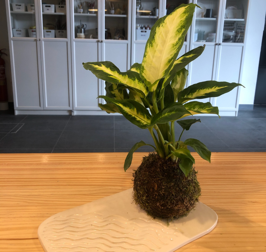Después, pasarás al barro para modelar a mano una bandeja de cerámica personalizada, pensada para acompañar y sostener tu kokedama. Podrás jugar con formas y texturas, y semanas más tarde la recogerás ya cocida y lista para usar.